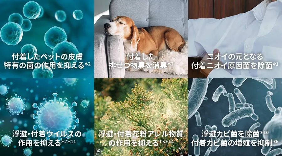 - 浮遊・付着花粉アレル物質の作用を抑える