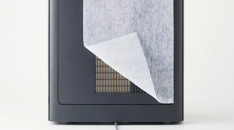 汚れたらはがして捨てる「使い捨て加湿プレフィルター」で汚れが加湿フィルターに付着するのを低減します。